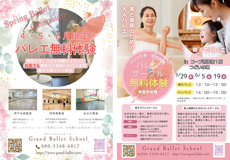 2023年4月2日(日) グランバレエスクール第6回 14周年発表会 開催のお知らせ! 明石市民会館にて |